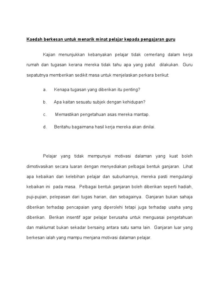 Kaedah Berkesan Untuk Menarik Minat Pelajar Kepada Pengajaran Guru Pdf